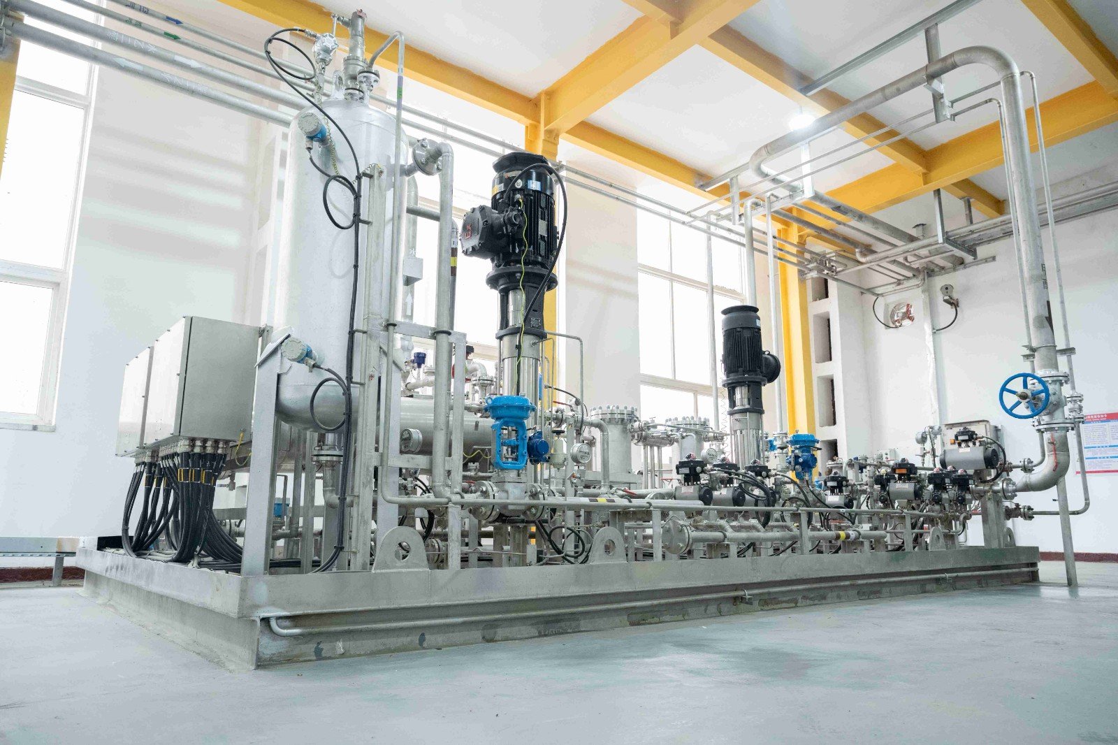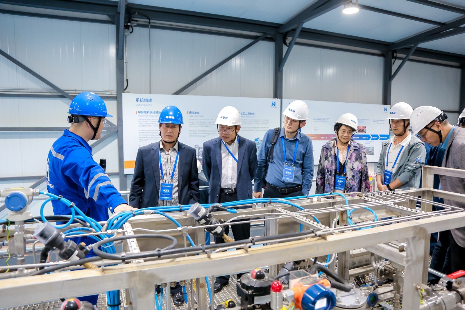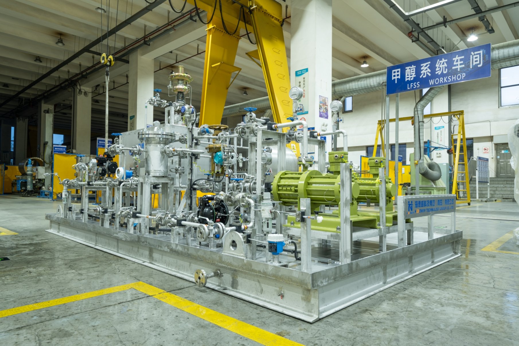 中船發動機有限公司大柴公司甲醇雙燃料試車平臺,配備了由海德威科技集團提供的涵蓋甲醇燃料供給模塊、加注儲存系 統、輔助換熱系統、氮氣系統以及控制安保系統等核心模塊在內的一站式系統解決方案。該方案及其配套模塊由海德威自主 研發和生產,是國產首個成功應用的甲醇燃料供給系統成熟解決方案。